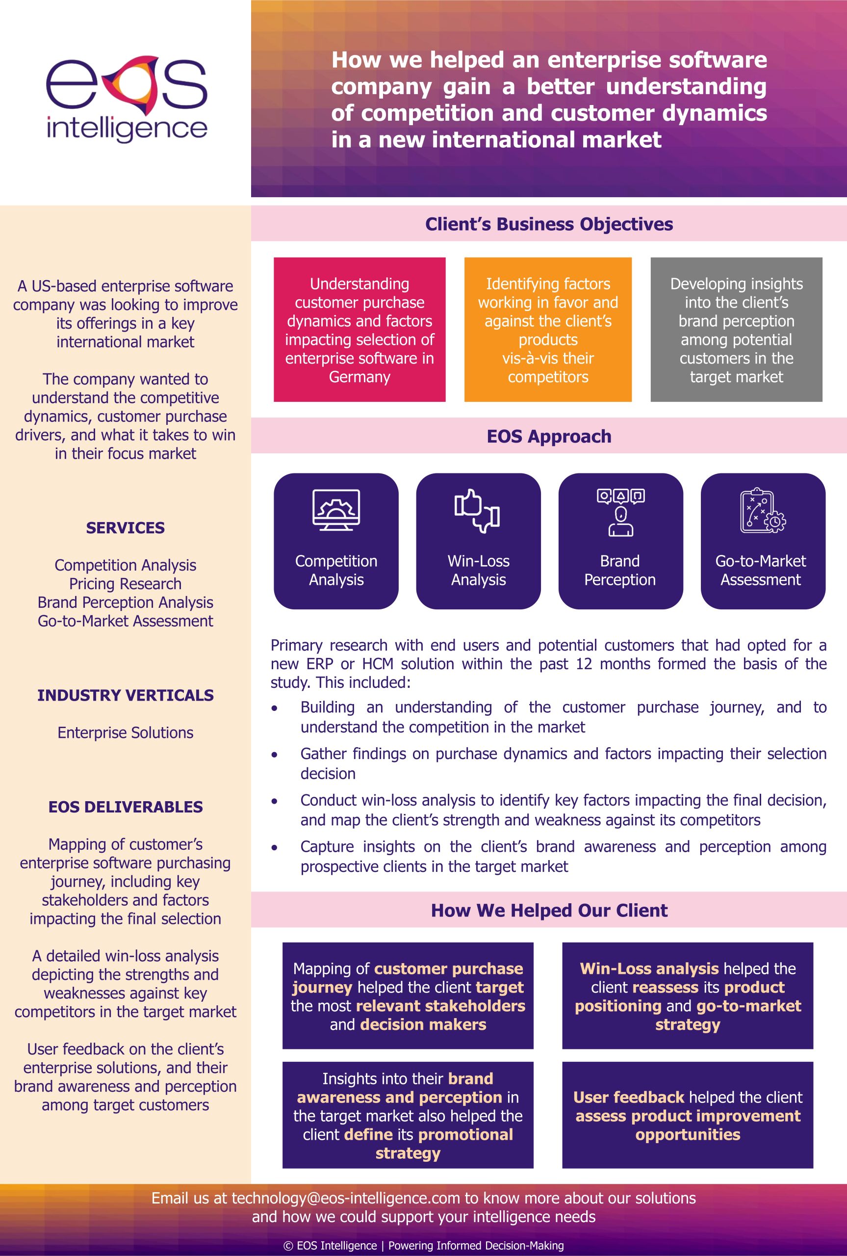 Our perspective is shaped by work across enterprise software, digital platforms, and technology-enabled services, with a strong focus on competitive intelligence and voice-of-customer insights.